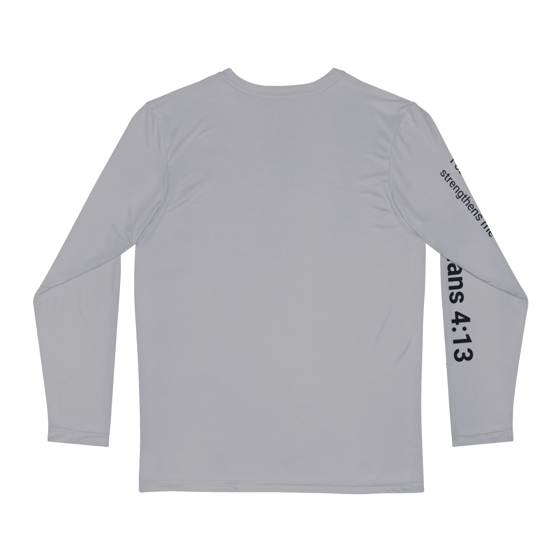 A lightweight long-sleeve built to carry a quiet, confident message. Soft-feeling polyester holds a subtle silver-gray canvas while a gold-accented cross and bold gothic ‘STRENGTH’ across the chest anchor the design. Scripted scripture runs down the sleeves, adding a reflective, wearable reminder of faith and perseverance. Wear it on cooler mornings at the coffee shop, layered under a jacket for church events, or as a contemplative piece during volunteer days. The shirt moves with you, dries quickly after activity, and keeps its shape wash after wash — a steady companion for anyone who wants their faith to be seen without shouting.