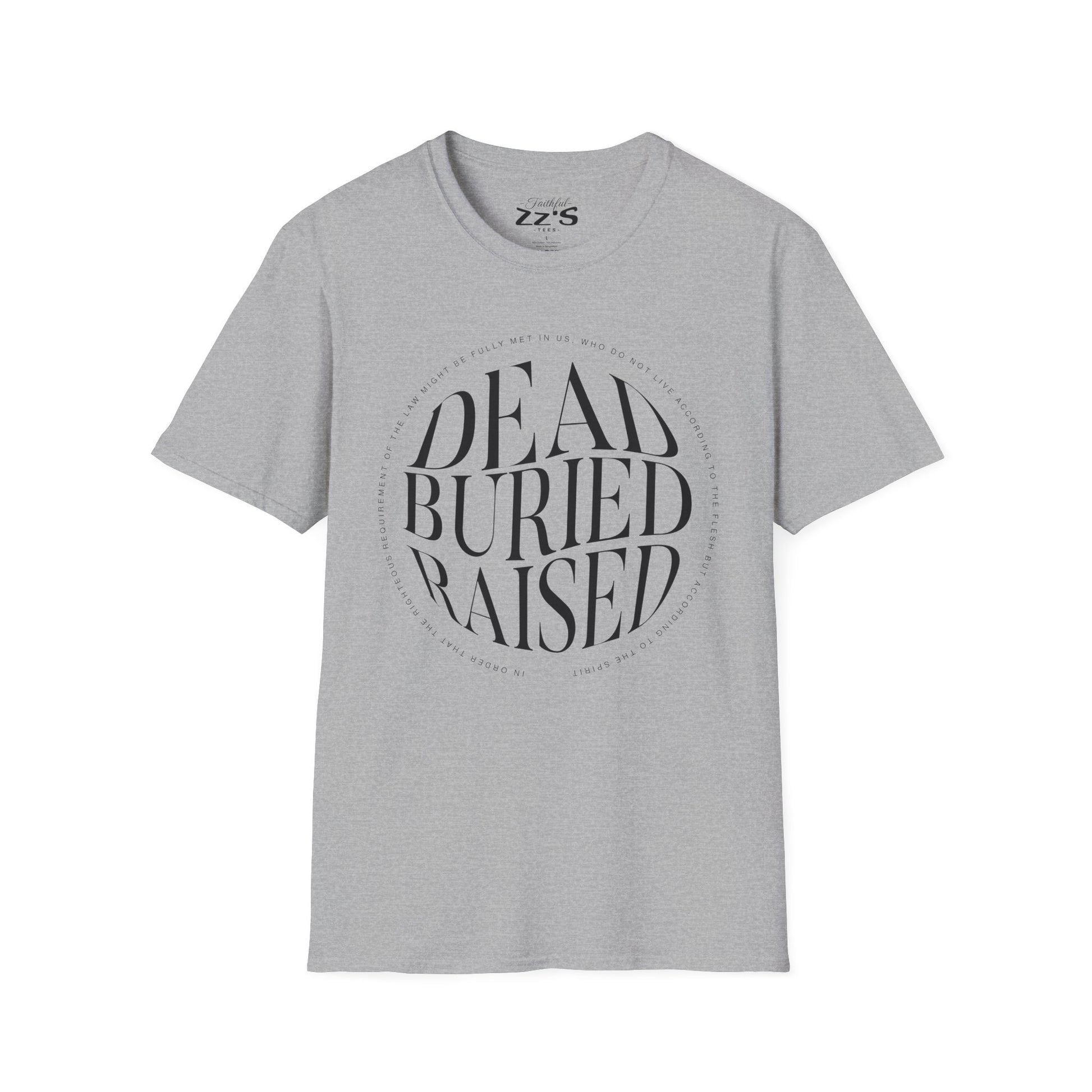 T-Shirt — "Dead Buried Raised" Minimalist Christian Faith Shirt