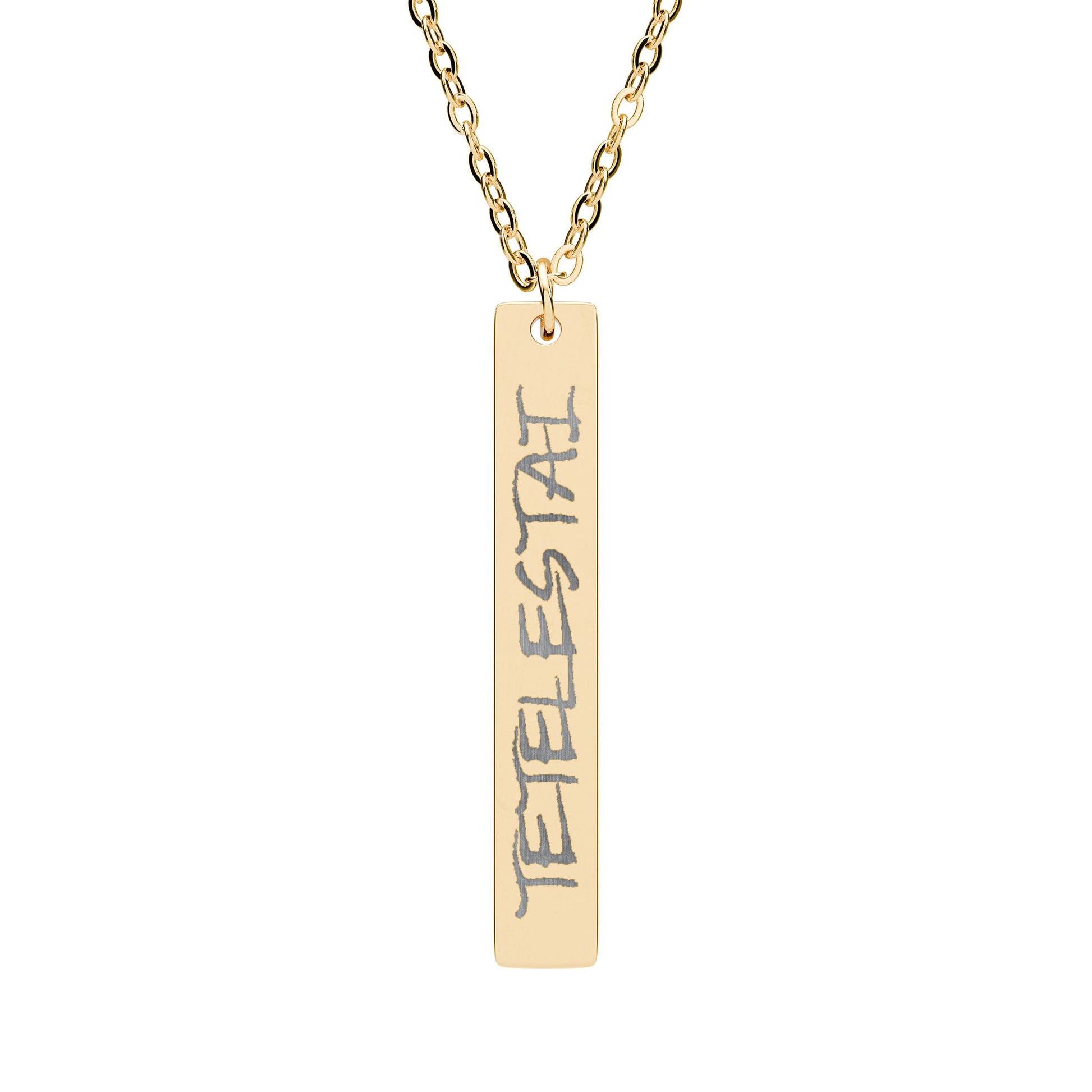 This necklace offers a polished finish for a gleaming, reflective look. Ideal for adding a subtle, yet stylish touch to any outfit, this bar necklace can be customized with engraving to make it truly unique. Perfect for giving a sophisticated edge to your look.